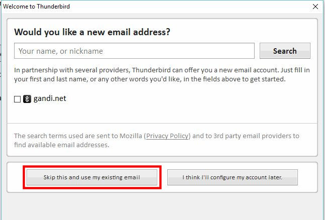 From Thunderbird's opening screen, select "Email" under "Create a new account".